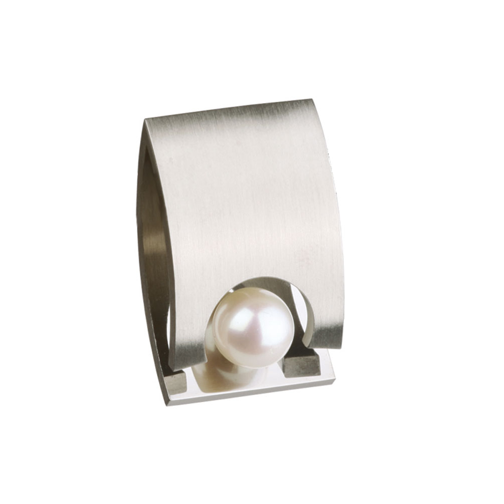 Stilvoller Anhänger aus poliertem und mattiertem Edelstahl mit Süßwasser-Perle!