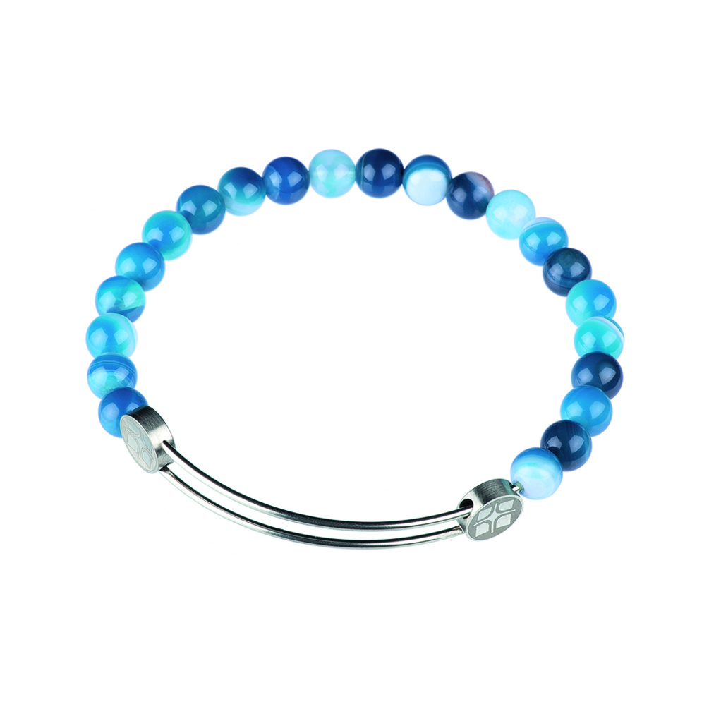 - Aus Edelstahl und poliertem, blaugefärbtem Achat.