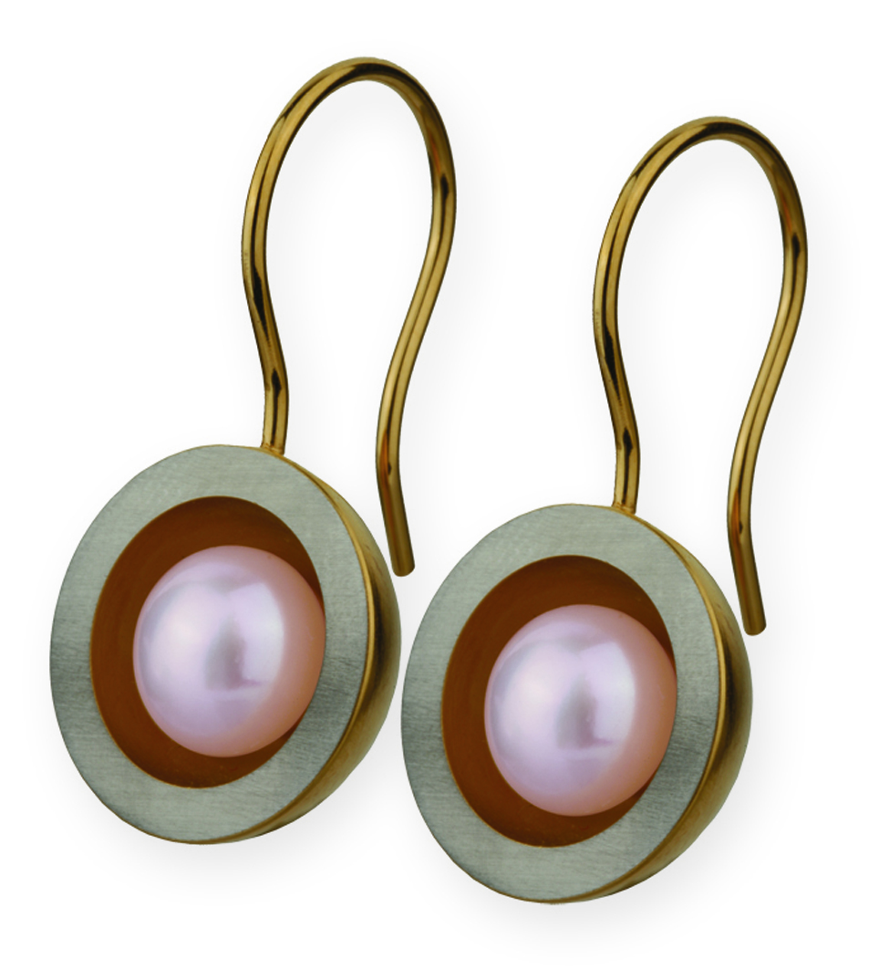 Elegante Ernstes Design Ohrhänger mit edlen Süßwasser-Perlen in vergoldeten Halbkugeln!