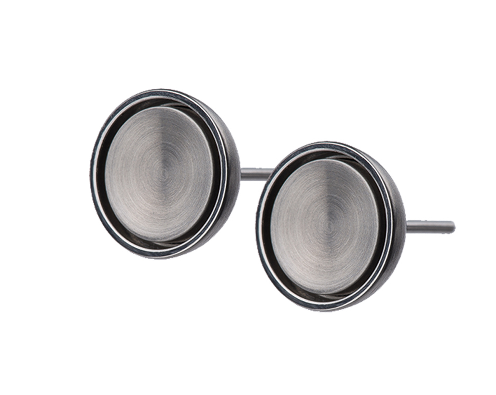 Edle Ernstes Design Ohrstecker mit eleganten Halbkugeln aus Edelstahl und konkaven Scheiben.