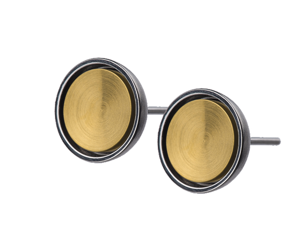 Stilvolle Ernstes Design Ohrstecker mit schlichten Halbkugeln aus Edelstahl und goldenen Einlagen!