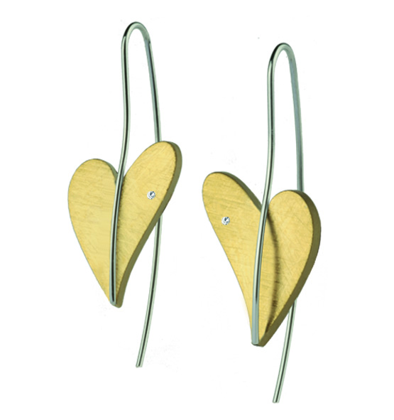 Edle kleine Ohrringe mit goldenen, brillant-besetzten Herzen!