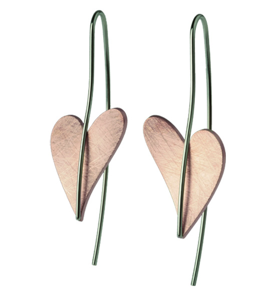 Romantische Ohrringe mit stilvollen, rotgoldenen Herzen an verspielten Stahlbügeln!
