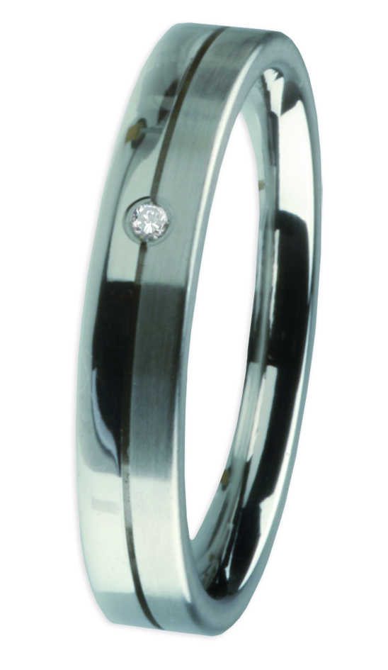 Eleganter Ernstes Design Brillant-Ring aus Edelstahl mit polierter und mattierter Seite. Ernstes Design Schmuck wird in Deutschland in einer eigenen Manufaktur gefertigt. Jetzt versandkostenfrei im Perlenmarkt OnlineShop bestellen!