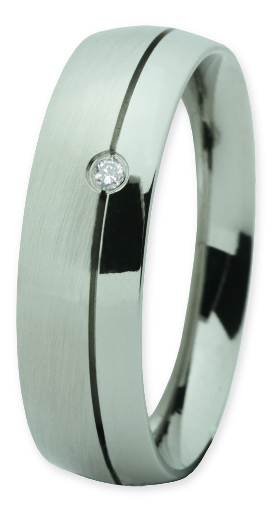 Klassischer, leicht gerundeter Brillant-Ring von Ernstes Design aus poliertem und mattiertem Edelstahl.