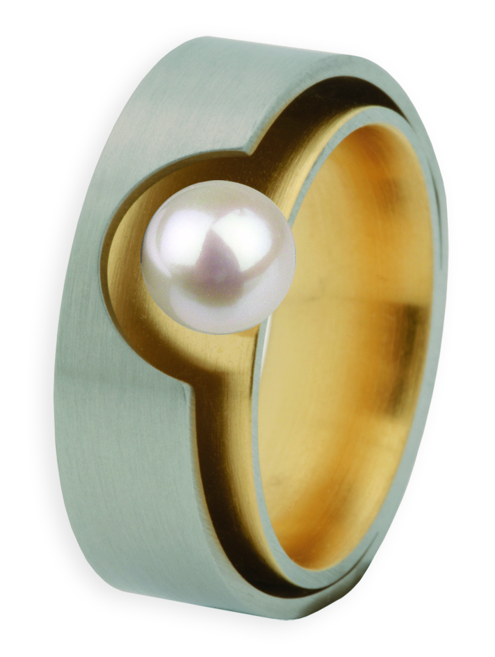 Starker Ring mit innovativem Design und eleganter Kombination aus Edelstahl, Gold und Süßwasserperle!