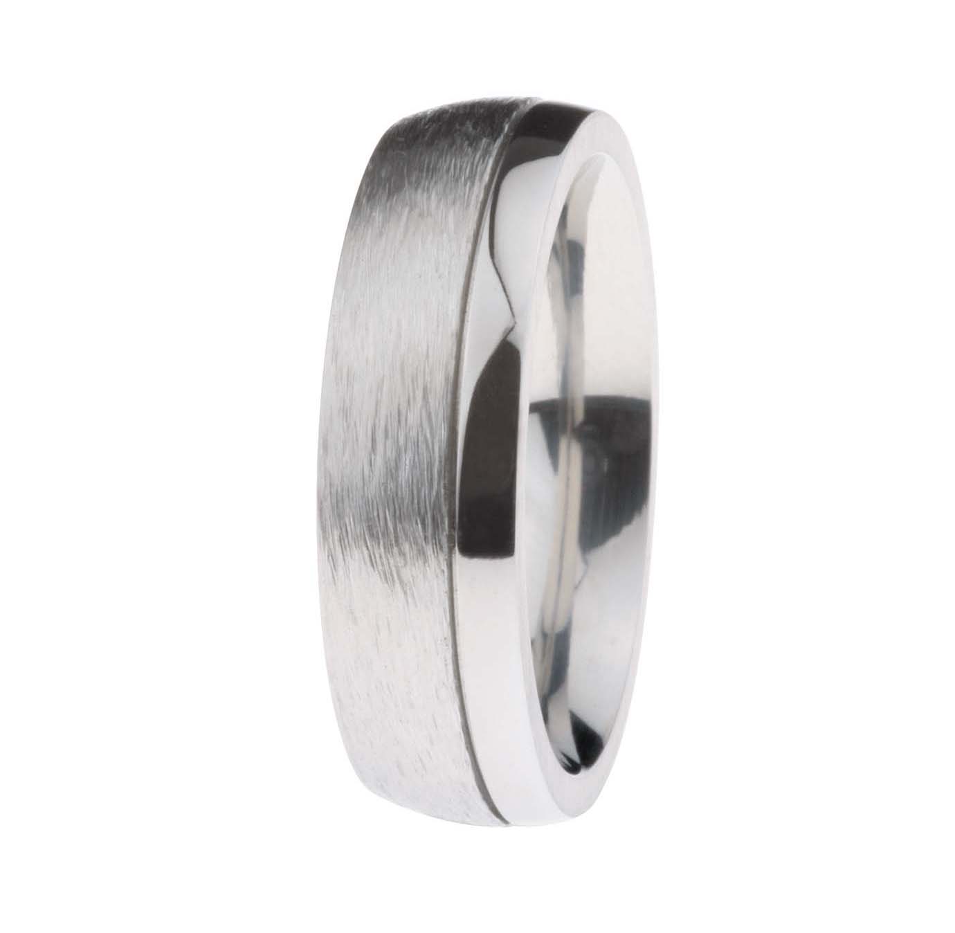 Eleganter Ernstes Design Ring mit schlichter Kombination aus geschliffenem und poliertem Edelstahl.