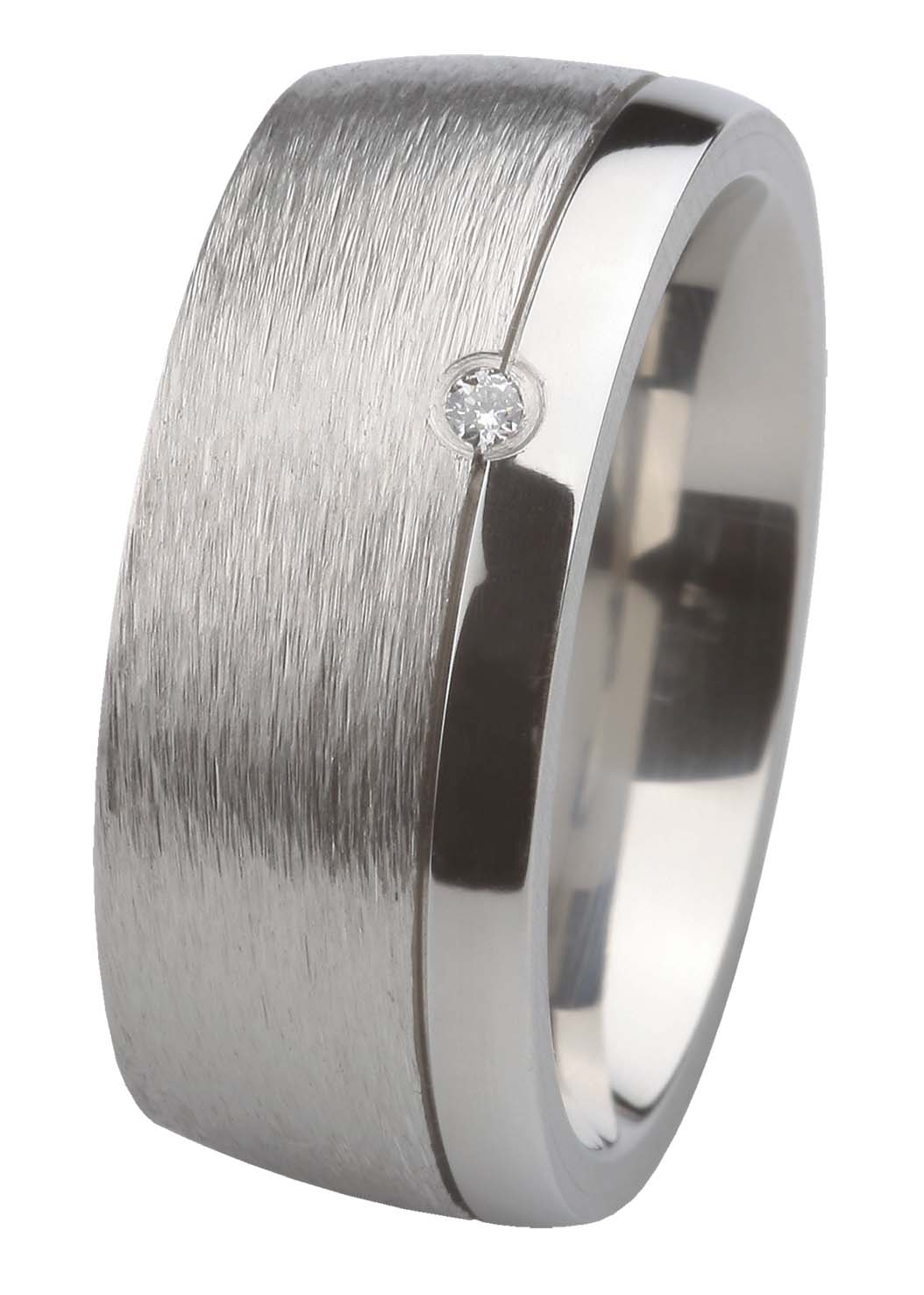 Stilvoller Brillant-Ring von Ernstes Design mit eleganter Kombination aus geschliffenem und poliertem Edelstahl. Ernstes Design Schmuck wird in Deutschland in einer eigenen Manufaktur gefertigt. Jetzt versandkostenfrei im Perlenmarkt OnlineShop!