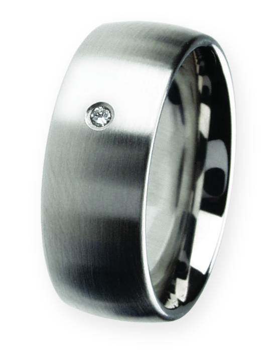 Stilvoller, leicht gerundeter Ernstes Design Ring aus klassischem Edelstahl mit zeitlosem Brillant. Ernstes Design Schmuck wird in Deutschland in einer eigenen Manufaktur gefertigt. Jetzt versandkostenfrei im Perlenmarkt OnlineShop!