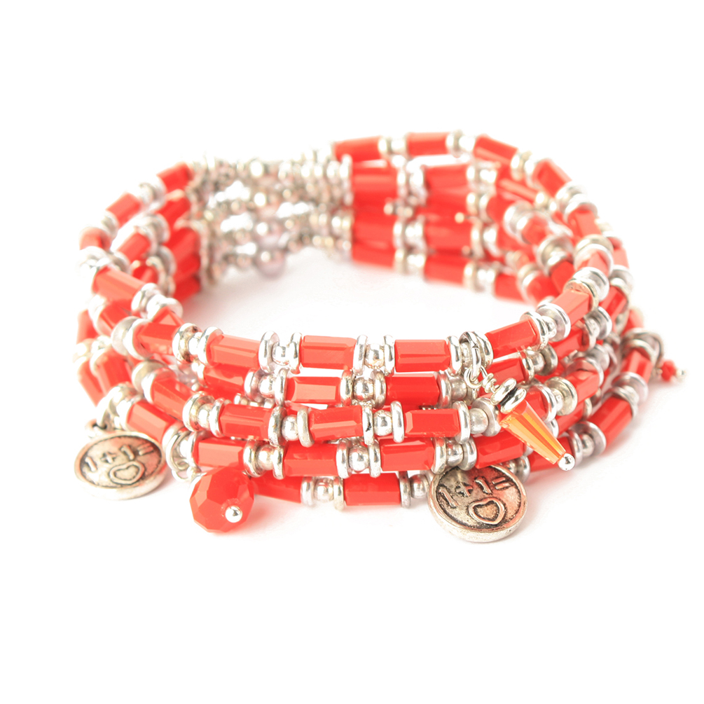 Fantastisches Exoal Perlenarmband in Korall-Rot mit feinen Silberelementen und bezaubernden kleinen Anhängern!