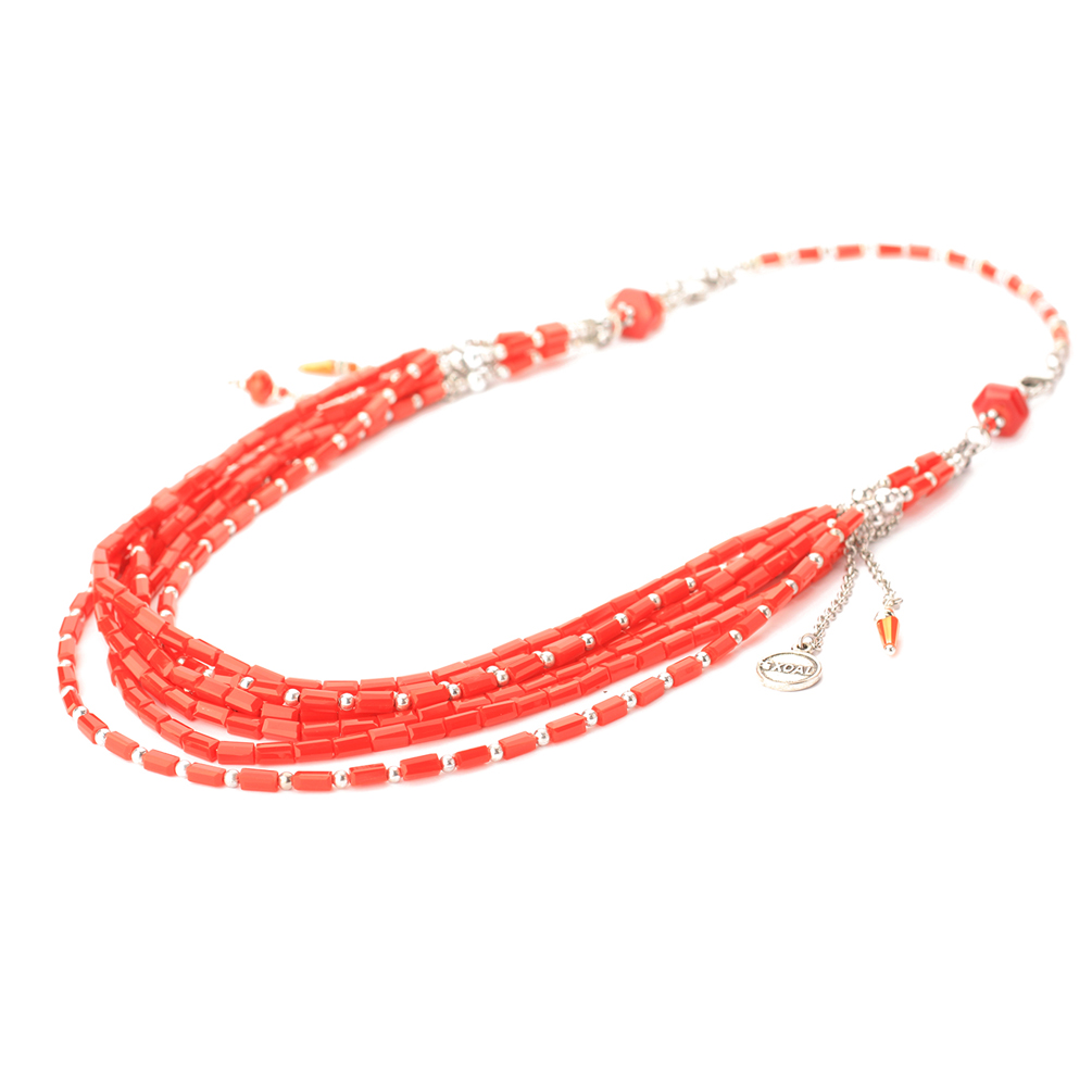 Traumhaftes, mehr-reihiges Exoal Collier in Korall-Rot mit genialer Optik und vielen Kombinationsmöglichkeiten!