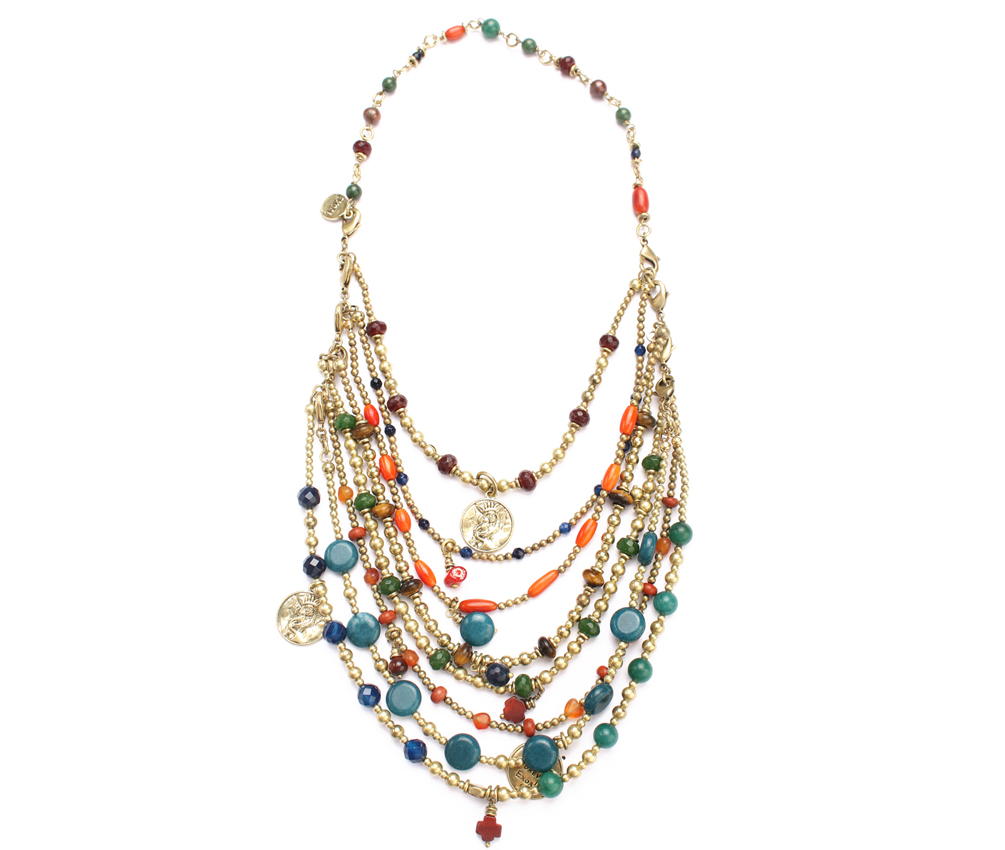 - Aus Achat, gefärbtem Naturstein, Glas, Jaspis und vergoldetem, nickelfreiem Messing.