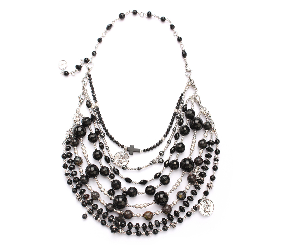 - Aus Achat, Glas, Jaspis, Hämatit und versilbertem, nickelfreiem Messing.
