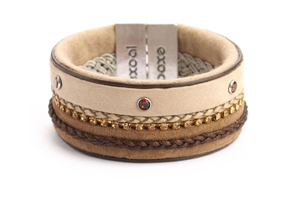Elegantes, breites Exoal Armband aus Leder mit Swarovski® Kristallen!