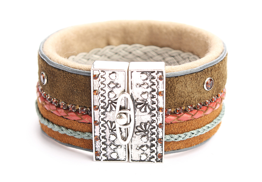 Geniales, breites Exoal Armband aus Leder mit Swarovski® Kristallen!