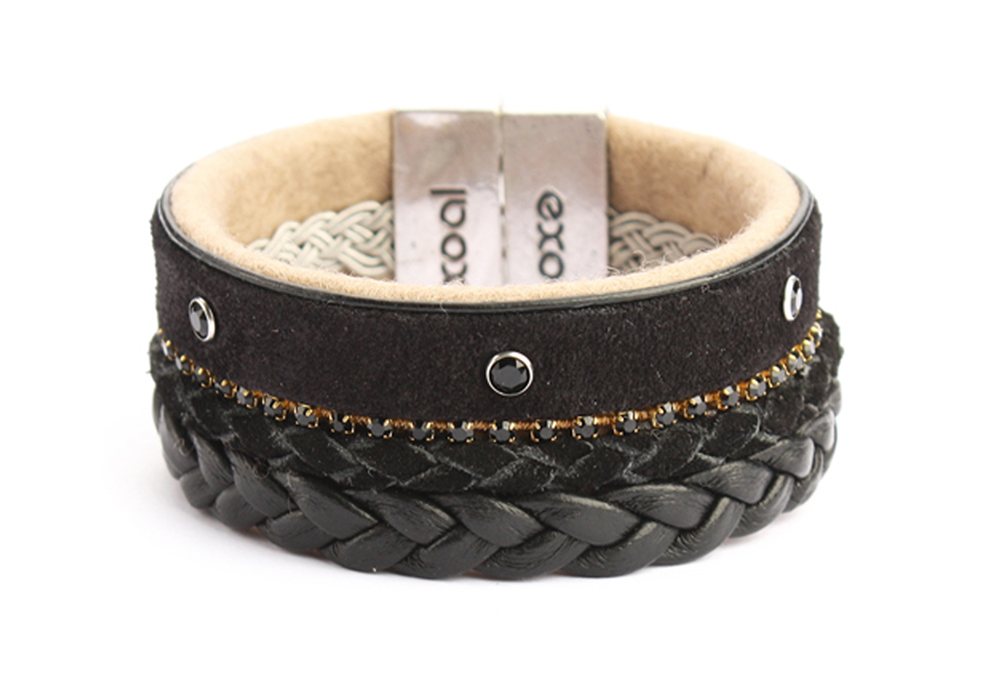Fantastisches, schwarzes Armband aus Leder mit Swarovski® Kristallen!