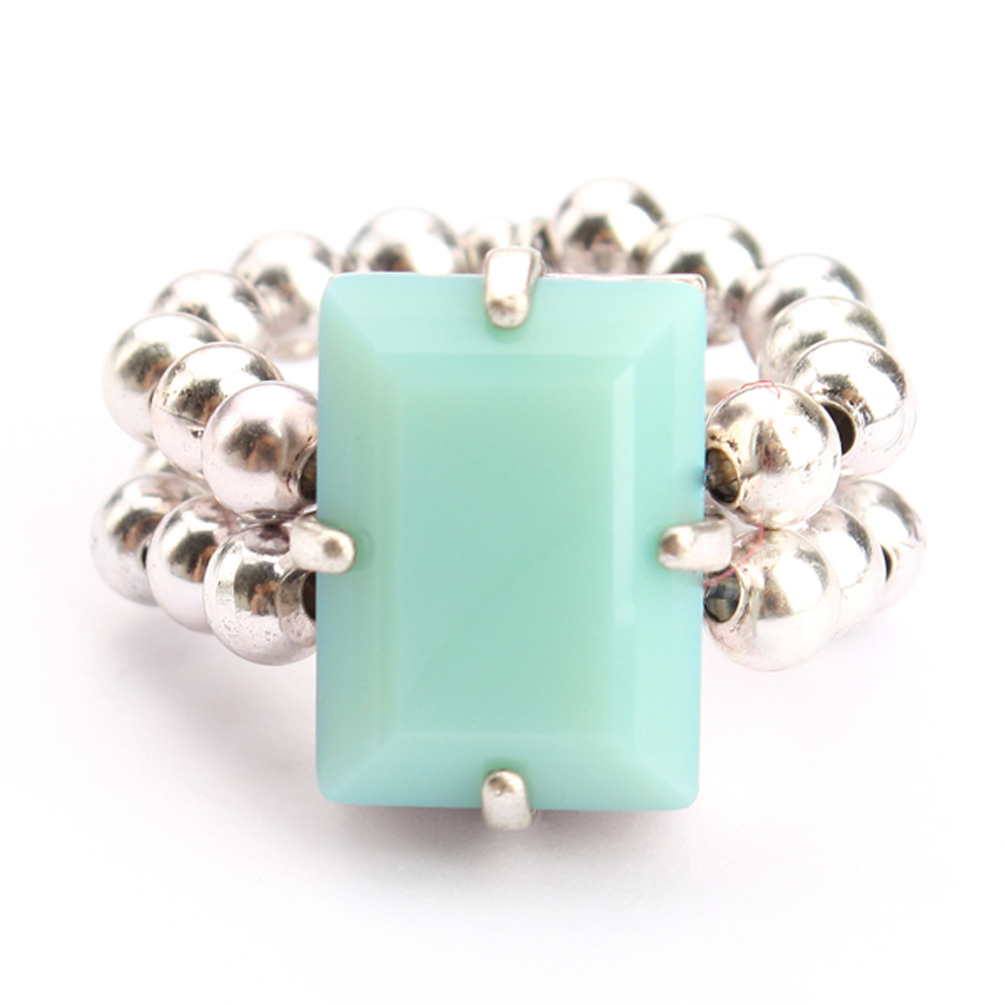 Entzückender Exoal Ring mit toller Kombination aus silbernen Perlen und türkisem Strass-Stein!