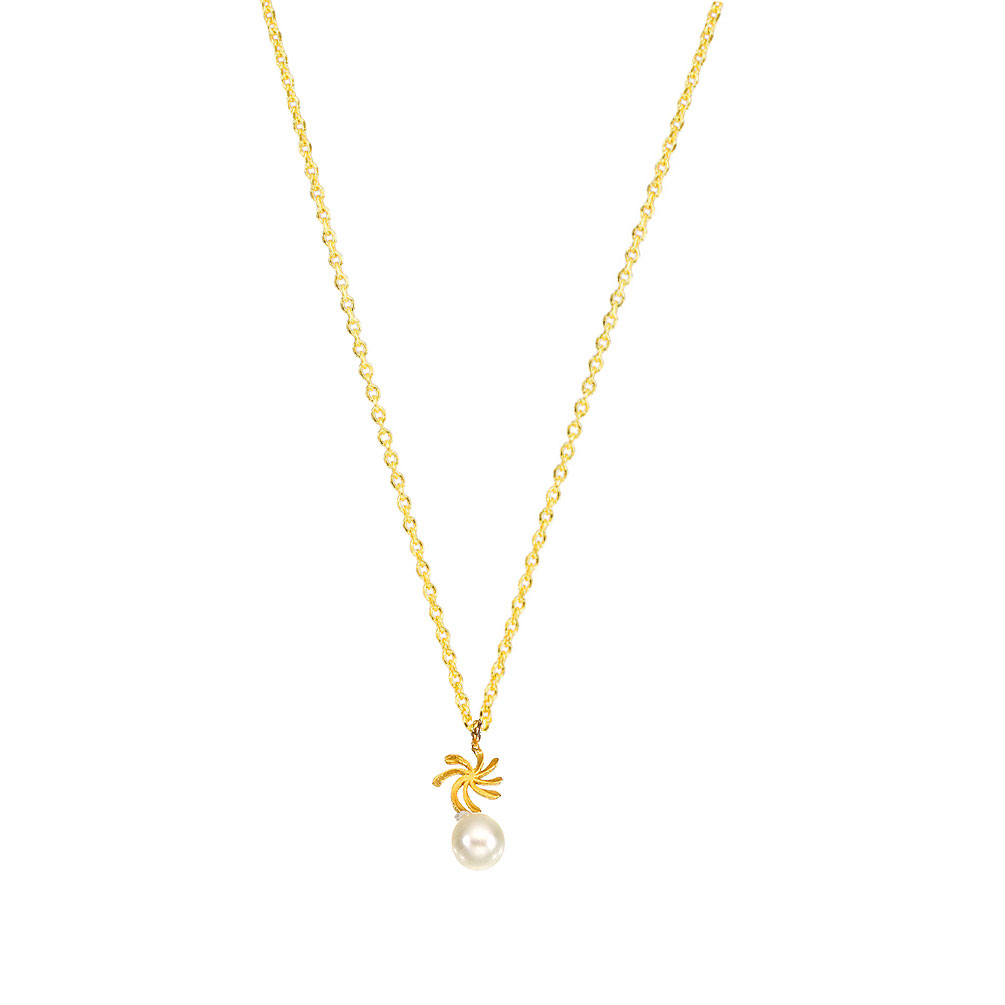 Bezaubernde Halskette von Krinaki Jewelry mit verspielter kleiner, auf einer Perle sitzender Palme aus Gold!