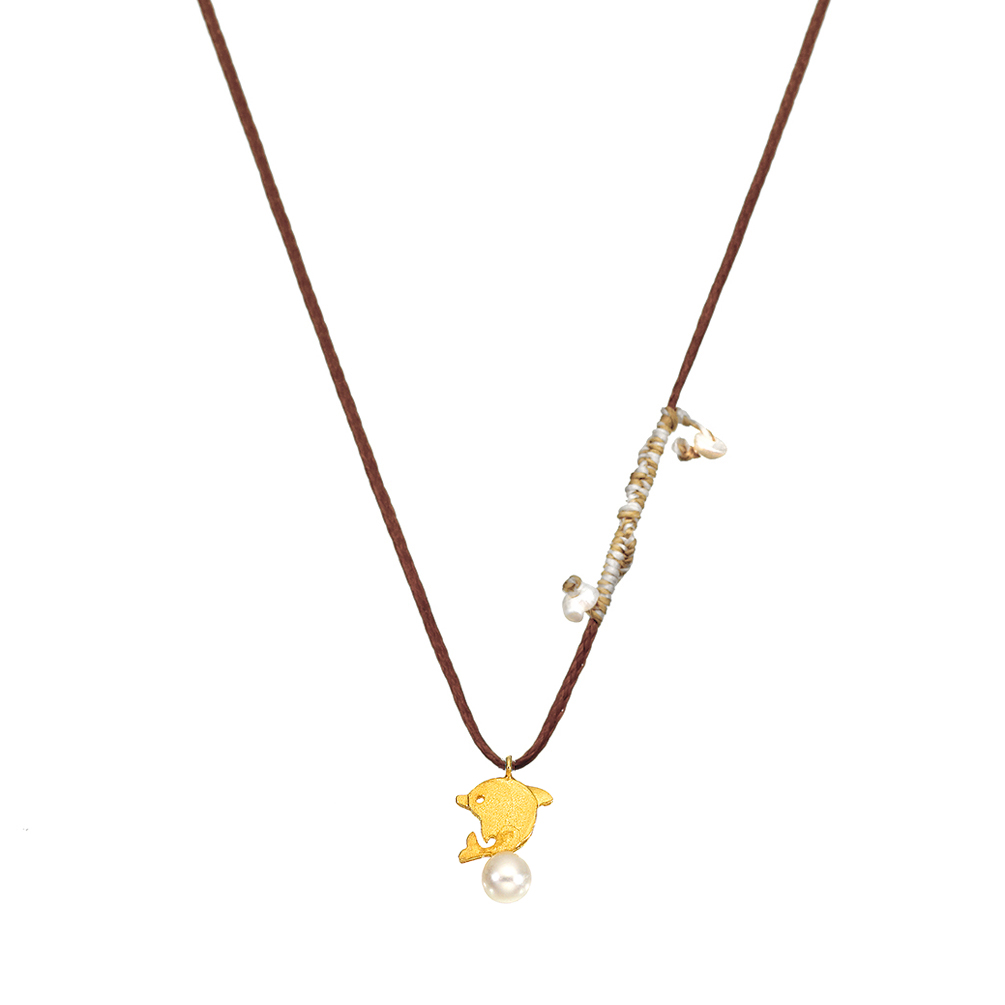 Süße Halskette mit verspieltem, goldenem Delfin und kleiner Süßwasser-Perle!