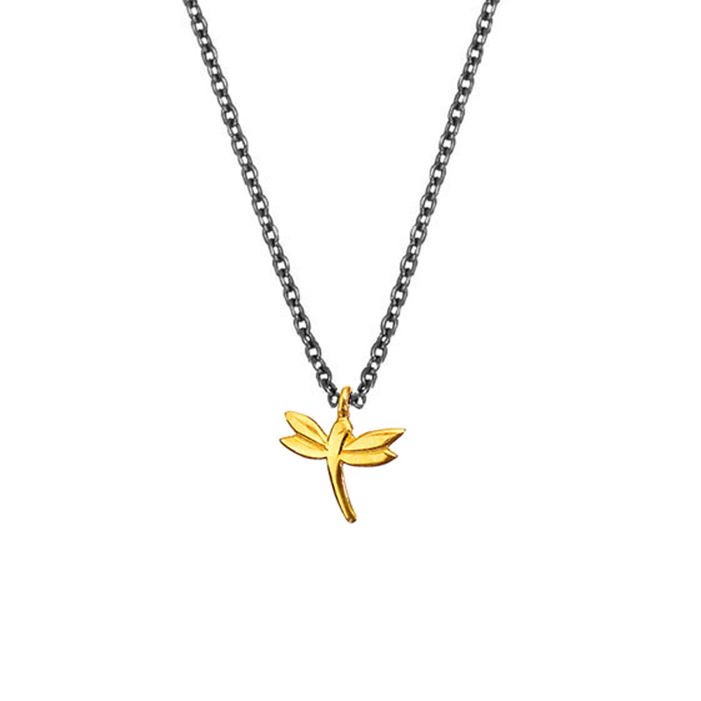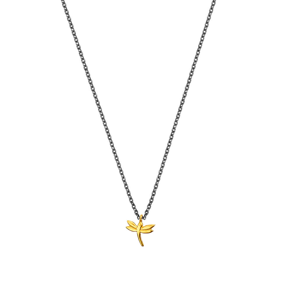 Verspielte Halskette aus Schwarzem Silber von Krinaki Jewelry mit bezaubernder kleiner Gold-Libelle!
