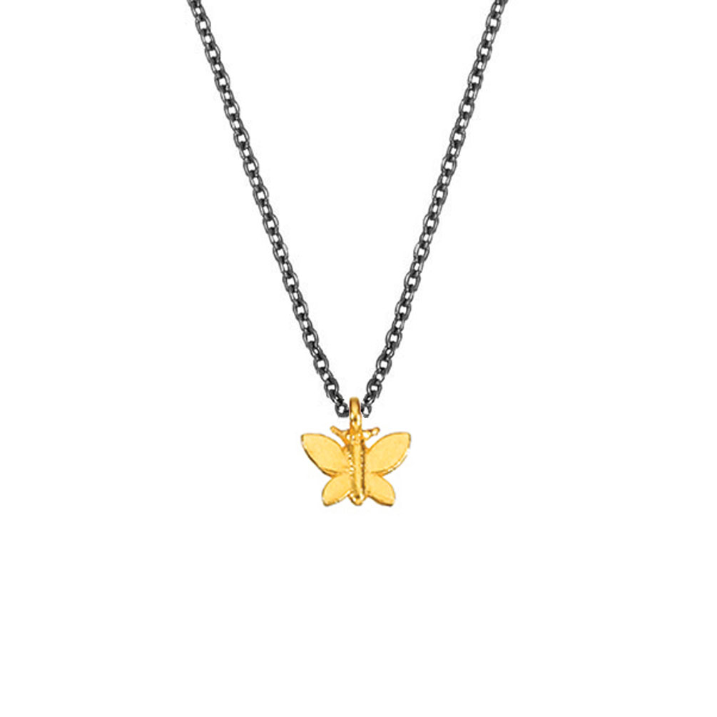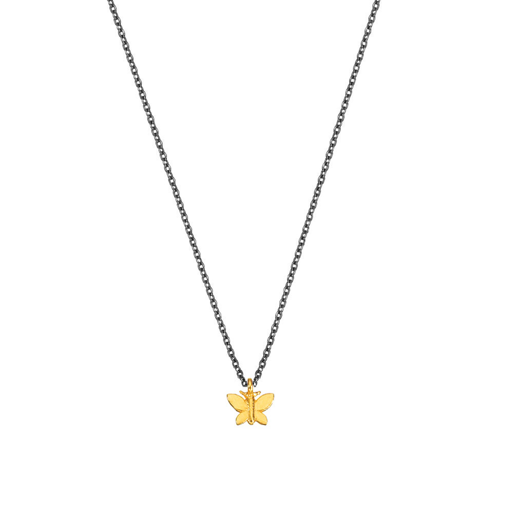Verspielte feine Halskette von Krinaki Jewelry mit wunderschöner Kombination aus geschwärztem Silber mit filigranem, goldenem Schmetterlingsanhänger!
