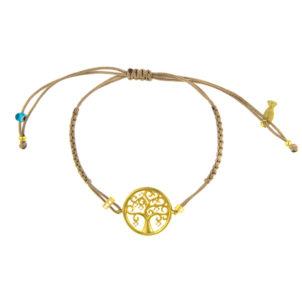 Zauberhaftes Kurshuni Armband mit filigranem Baum des Lebens aus vergoldetem Sterling Silber mit glitzernden Zirkonias!