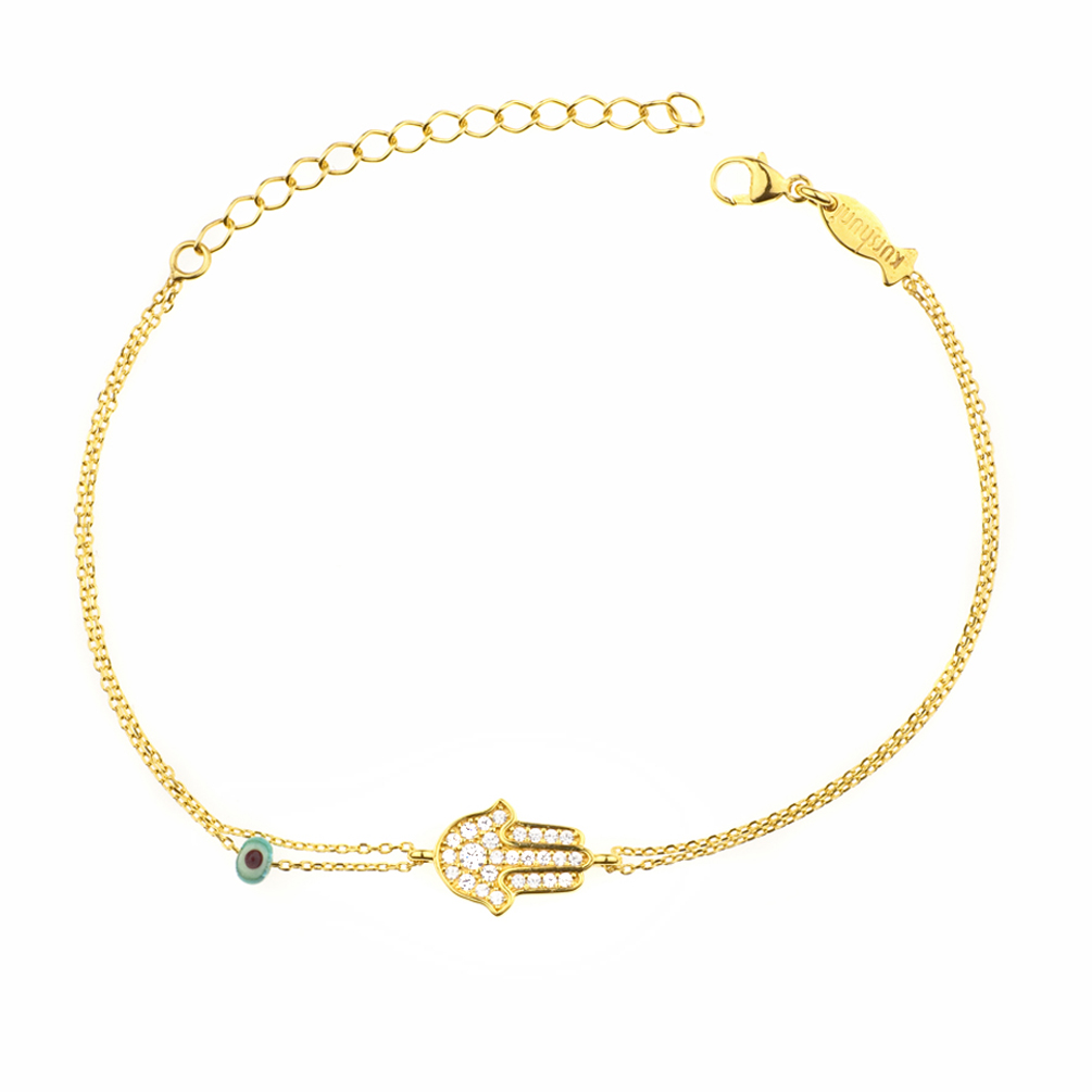 Bezauberndes Armband mit wunderschöner Hand der Fatima aus vergoldetem Sterling Silber und Zirkonias!