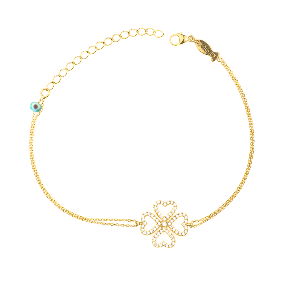 Glückliches Armband mit funkelndem Kleeblatt aus vergoldetem Sterling Silber und Zirkonias!