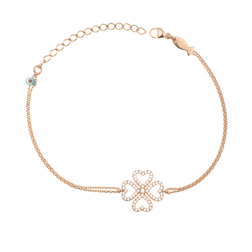 Glückliches kleines Armband mit funkelndem Kleeblatt aus rosévergoldetem Sterling Silber und Zirkonias!