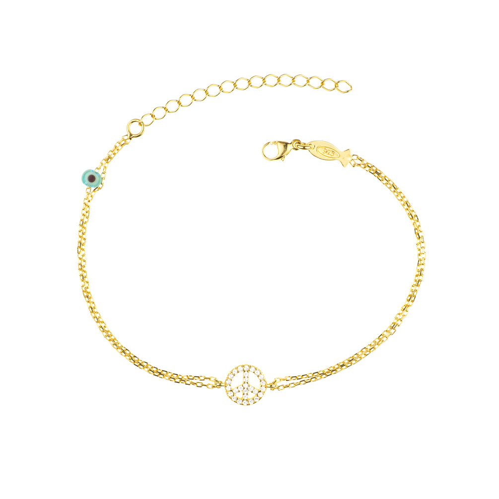 Reizendes Kurshuni Armband mit süßem kleinem Peace-Zeichen aus vergoldetem Sterling Silber mit funkelnden Zirkonias!