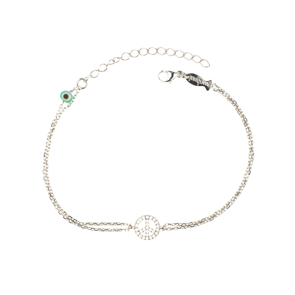Reizendes Kurshuni Armband mit süßem kleinem Peace-Zeichen aus Sterling Silber mit funkelnden Zirkonias!