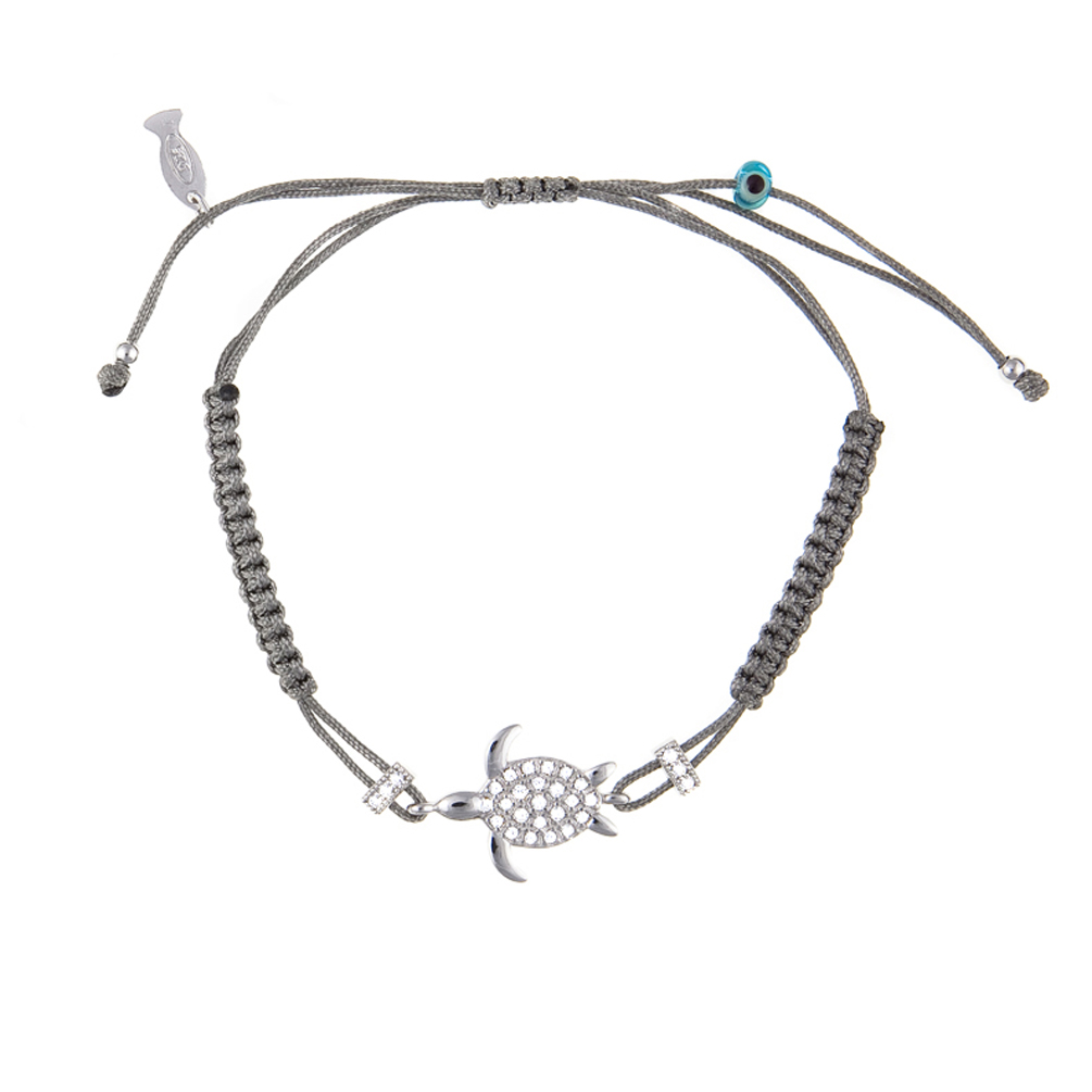 Verspieltes Armband mit bezaubernder Schildkröte aus Sterling Silber mit glitzernden Zirkonias und verstellbarem Stoffzug!