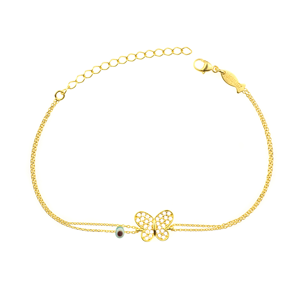 Wunderschönes Kurshuni Armband mit filigranem kleinem Schmetterling aus vergoldetem Sterling Silber und glitzernden Zirkonias!