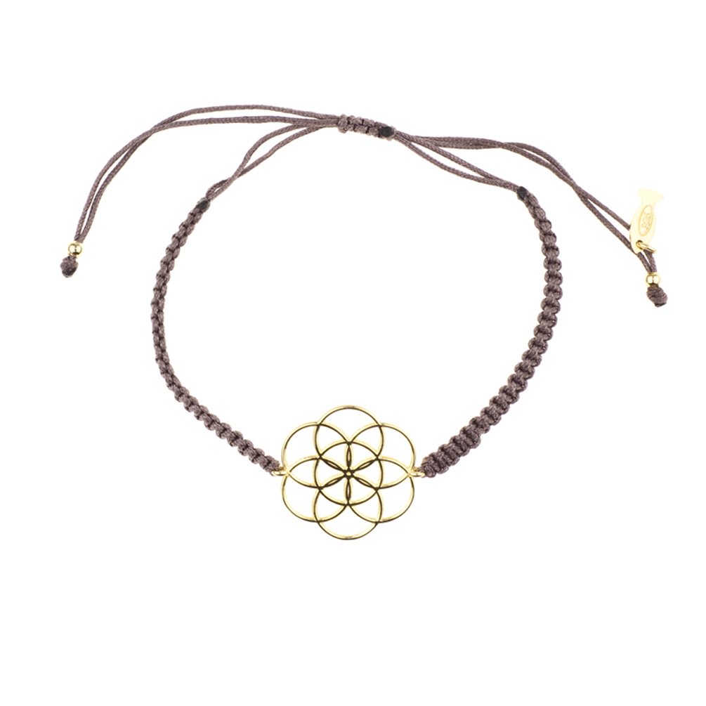 Umwerfendes Kurshuni Armband mit verzauberndem Seed of Life Ornament und wunderschönem Zug-Band in Taupe!