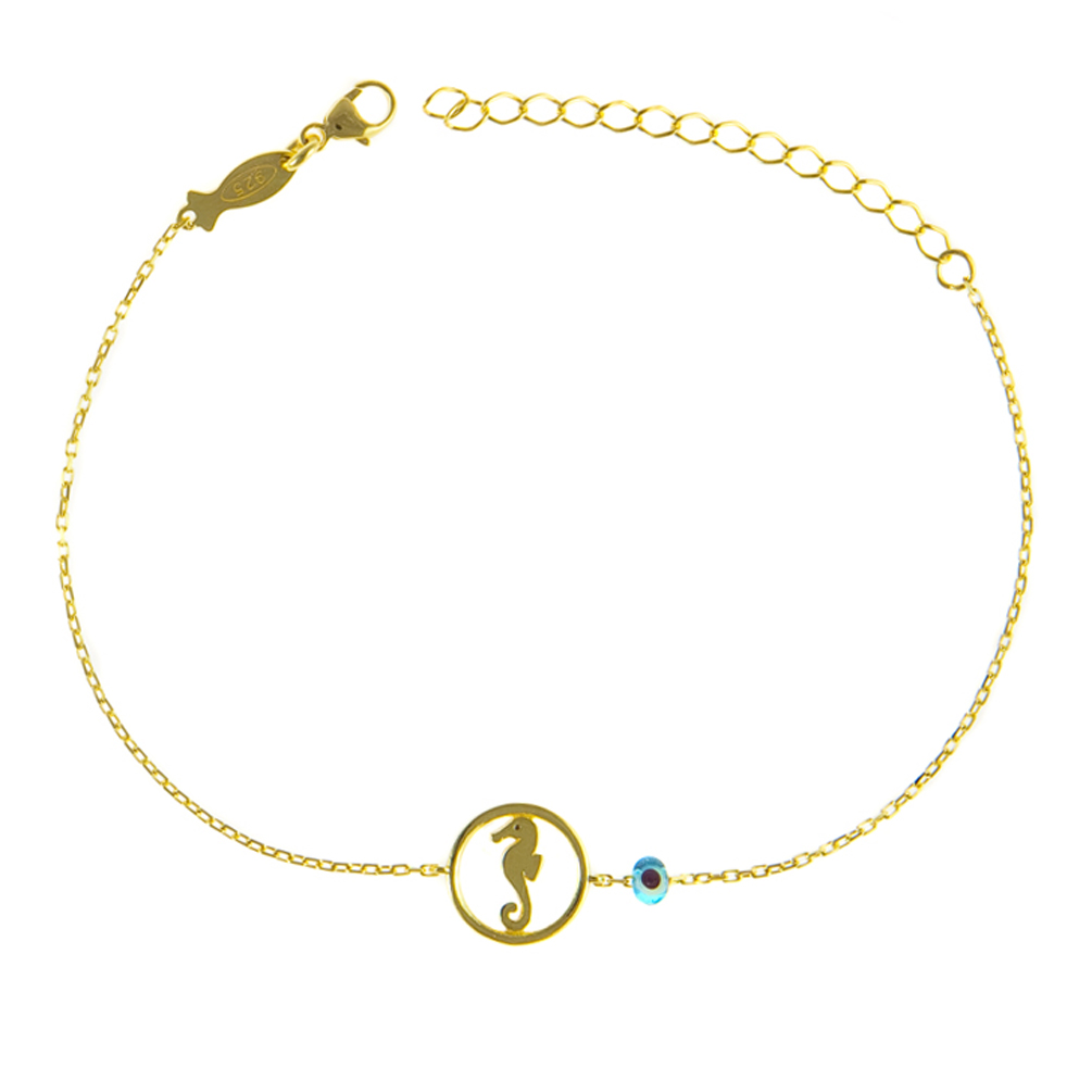 Entzückendes Kurshuni Armband mit kleinem Seepferdchen aus vergoldetem Sterling Silber!