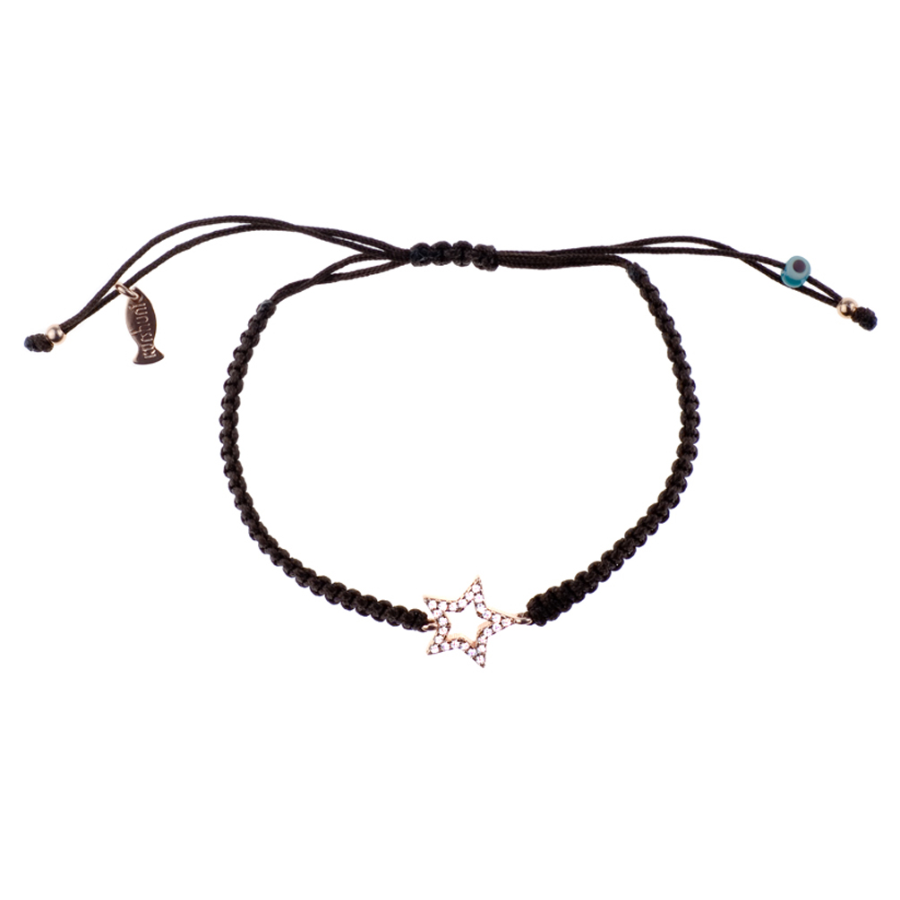 Fantastisches Kurshuni Armband mit dunkelbraunem Stoff-Zug und roségoldenem Stern mit funkelnden Zirkonias!