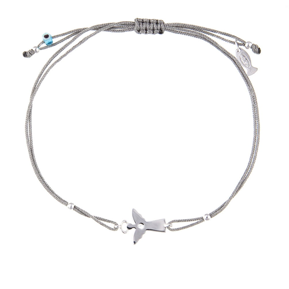 - Mit Nazar-Perle aus Glas und grauem Stoffzug aus Polyester.