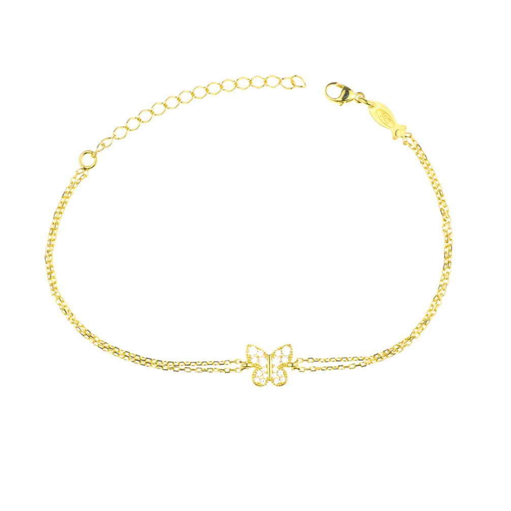 Bezauberndes, leichtes Kurshuni Armband mit verspieltem kleinem Schmetterling aus vergoldetem Sterling Silber mit glitzernden Zirkonias!