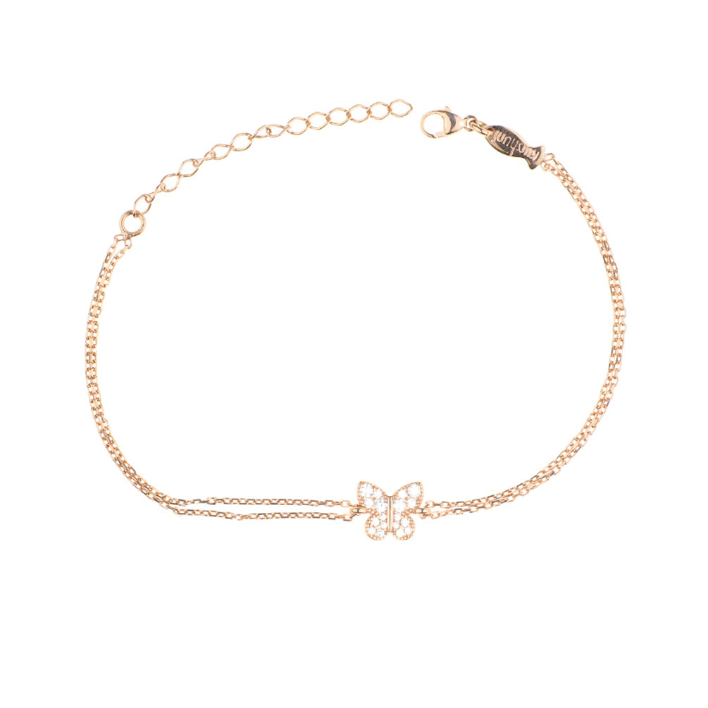 Bezauberndes, leichtes Kurshuni Armband mit verspieltem kleinem Schmetterling aus rosévergoldetem Sterling Silber mit glitzernden Zirkonias!