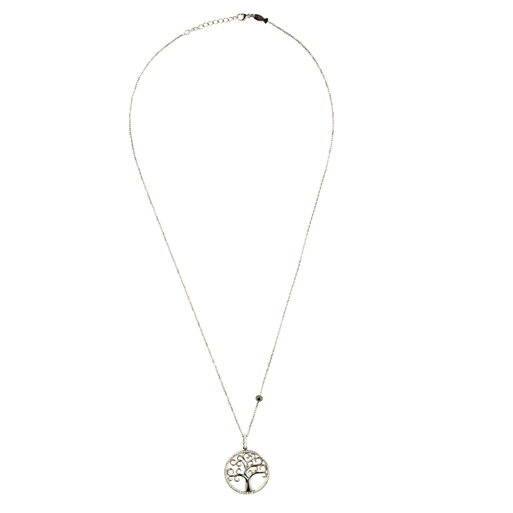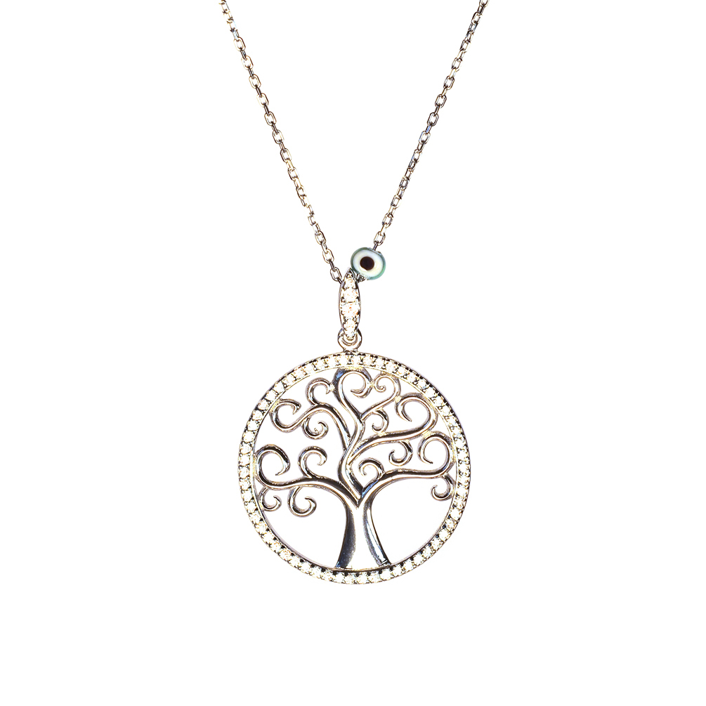 Fantastische Kurshuni Halskette mit wunderschönem Baum des Lebens aus Sterling Silber, umrundet von glitzernden Zirkonias!