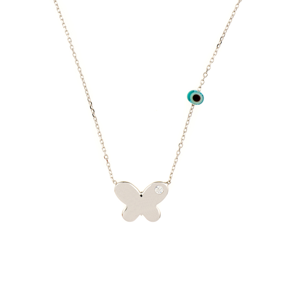 Reizende kleine Kurshuni Halskette aus rhodiniertem Sterling Silber mit Schmetterling!