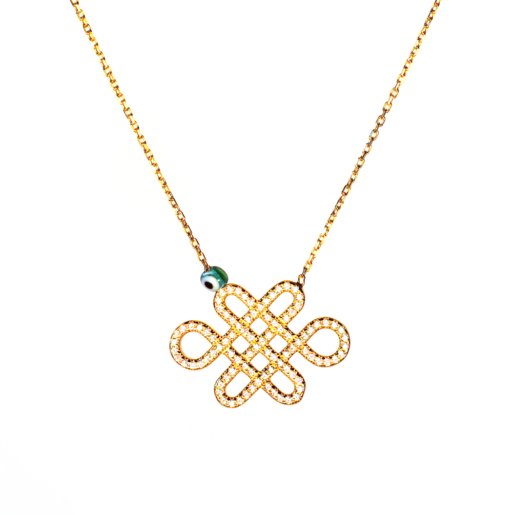 Fantastische Kurshuni Halskette mit Endlosem Knoten aus vergoldetem Sterling Silber, besetzt mit bezaubernden Zirkonias!