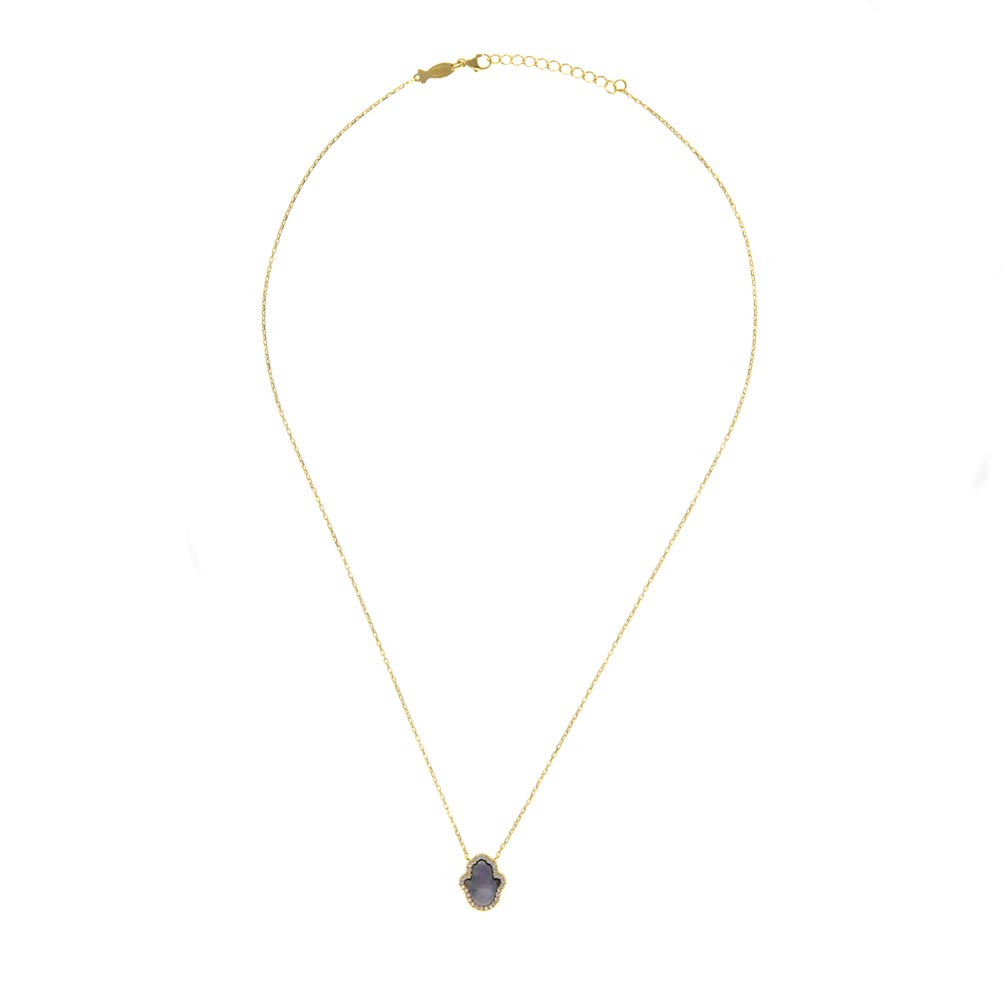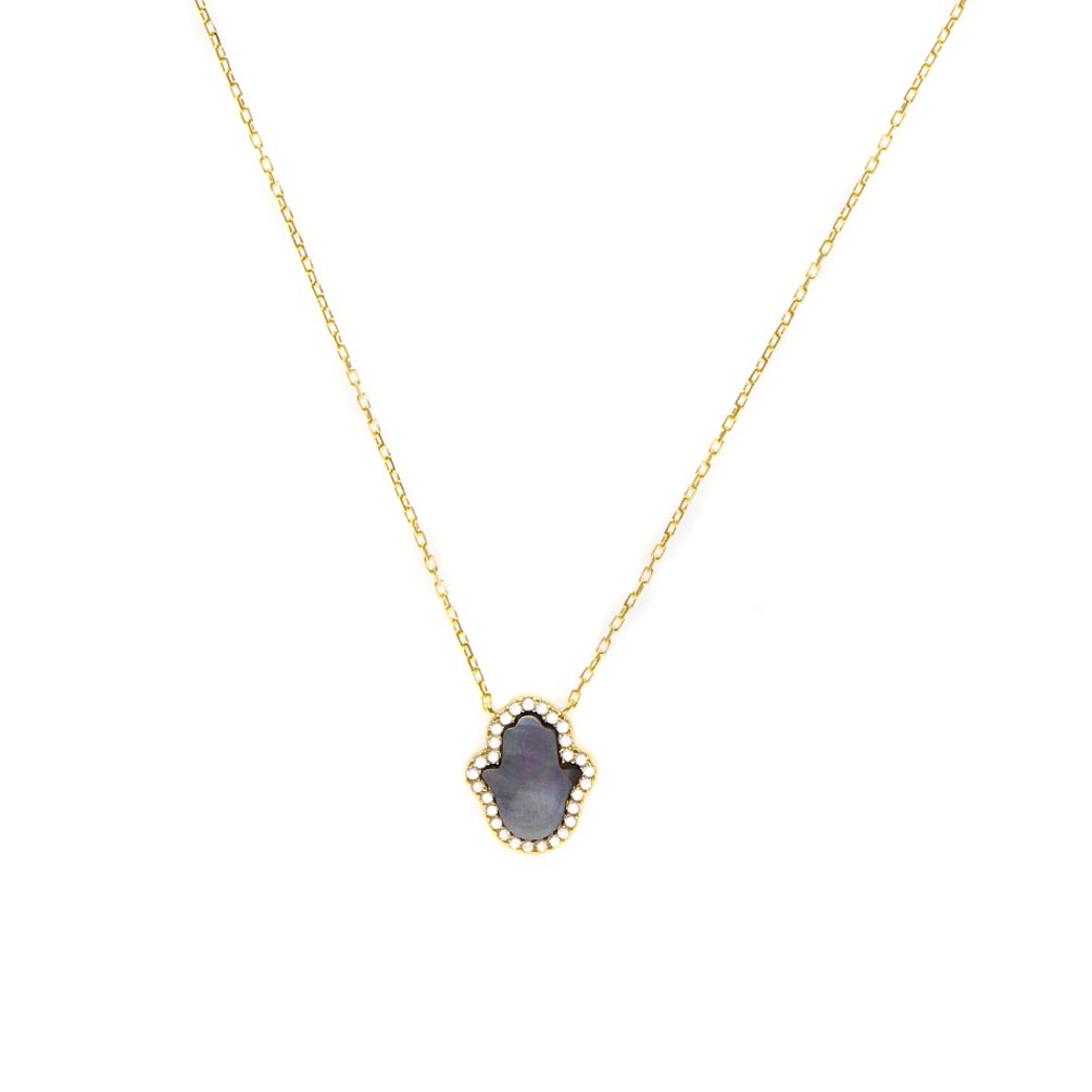 Verzaubernde Kurshuni Halskette mit Hand der Fatima aus Perlmutt, vergoldetem Sterling Silber und leuchtenden Zirkonias!
