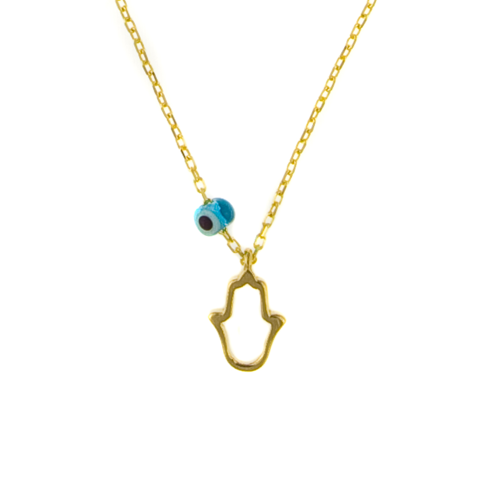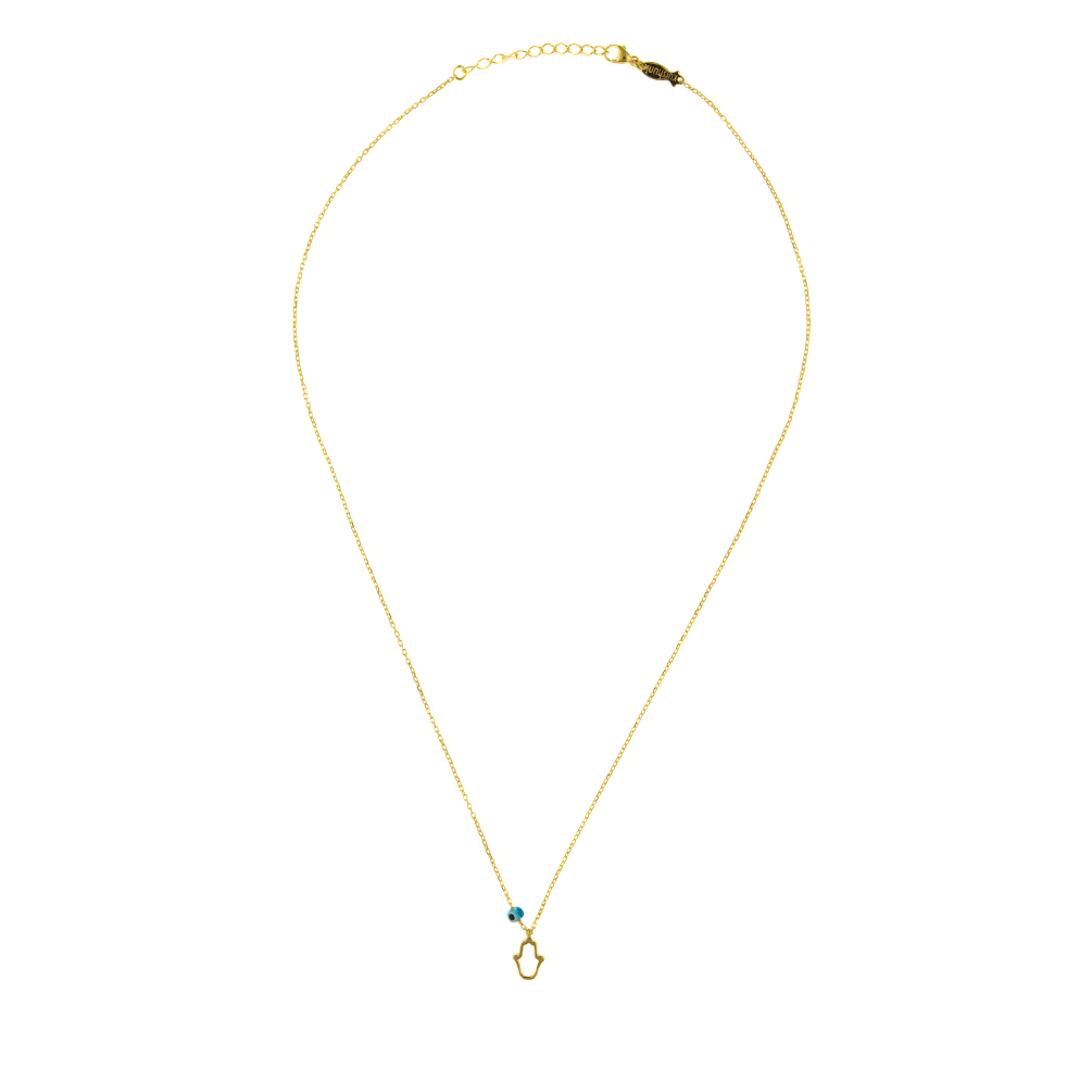 Entzückende Kurshuni Halskette mit kleiner Hand der Fatima aus vergoldetem Sterling Silber!