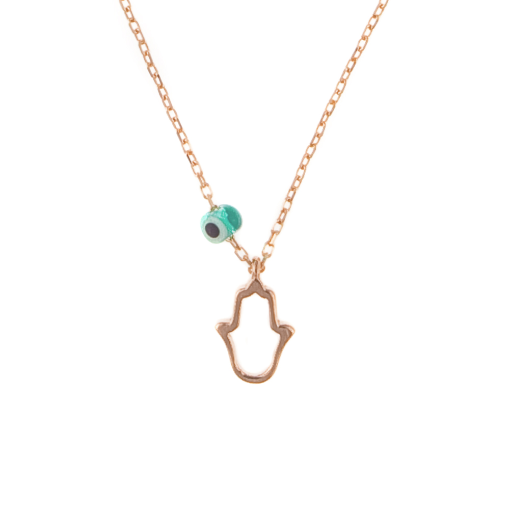 Entzückende Halskette mit kleiner Hand der Fatima aus rosévergoldetem Sterling Silber!