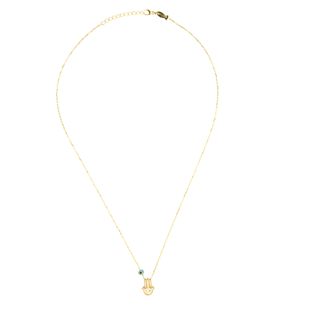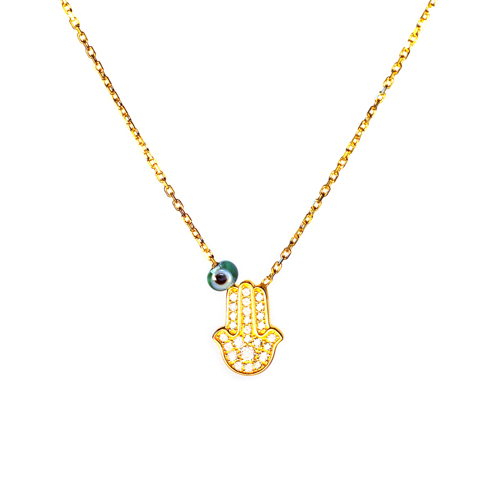 Fabelhafte kleine Kurshuni Halskette mit funkelnder Hand der Fatima aus vergoldetem Sterling Silber, besetzt mit Zirkonias!