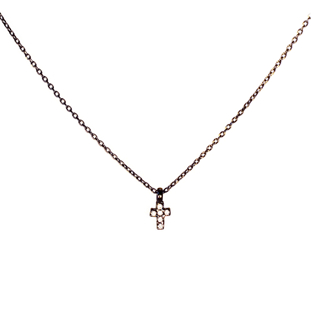 Herrliche Halskette mit zierlichem kleinem Kreuz aus geschwärztem Sterling Silber und glitzernden Zirkonias!