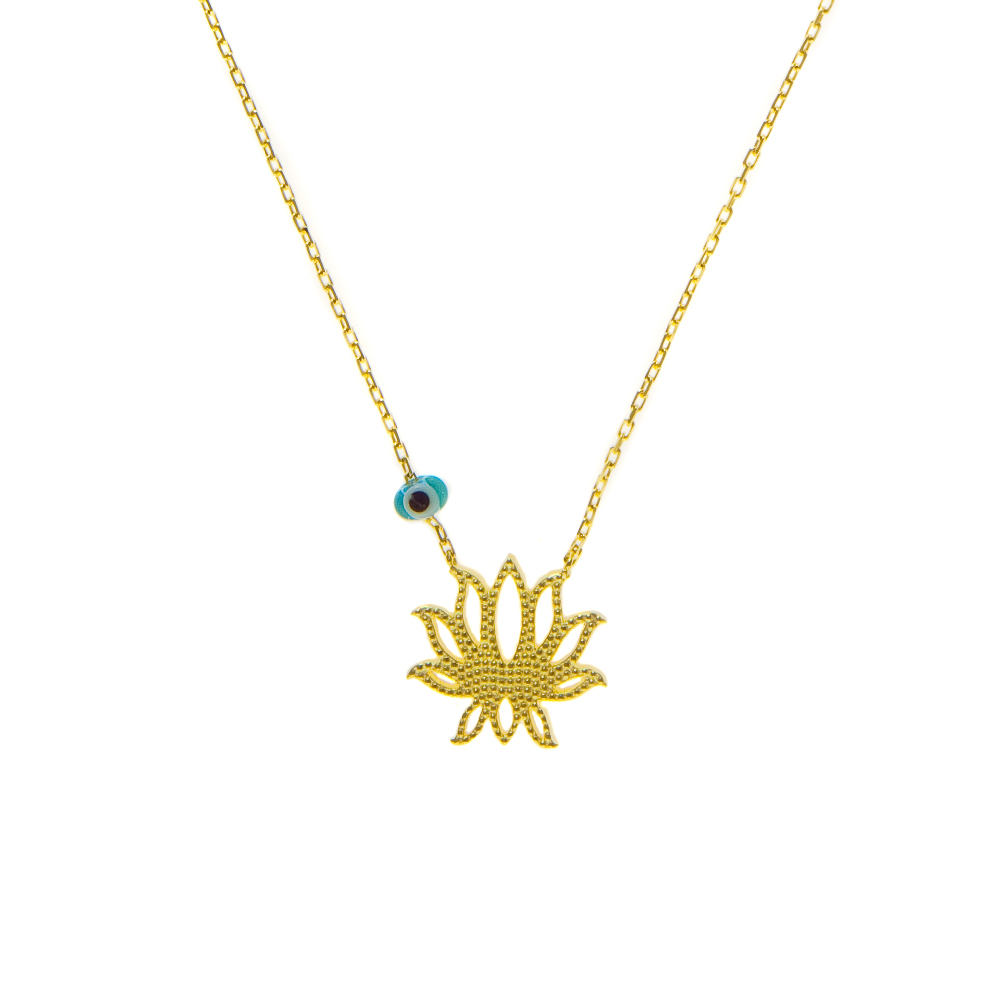 Wunderschöne Kurshuni Halskette mit stilvoller Lotosblume aus vergoldetem Sterling Silber!