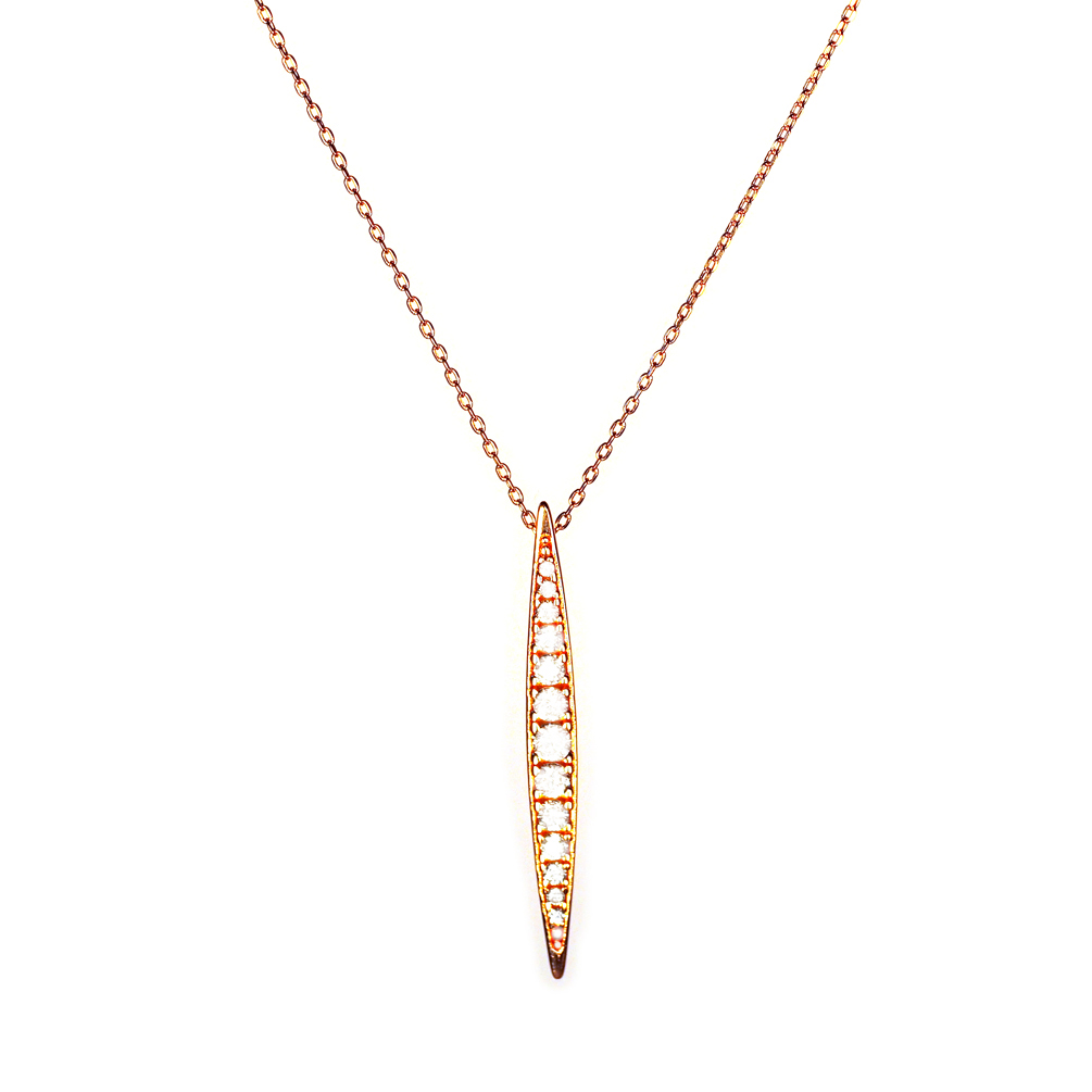 - Anhänger aus rosévergoldetem Sterling Silber (925) mit einzeln gefasstem Zirkonias: ca. 30 mm x 3 mm.