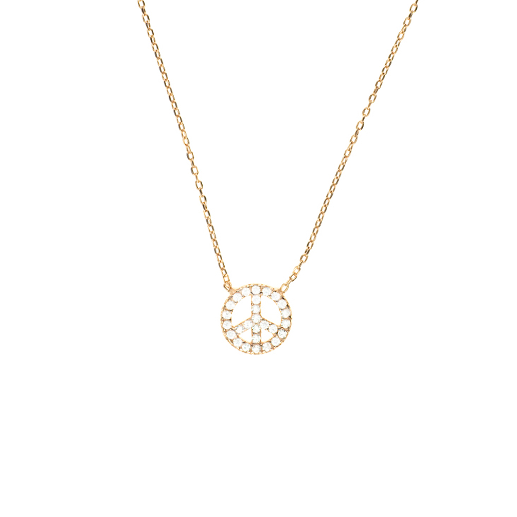 Reizende Kurshuni Halskette mit süßem kleinem Peace-Zeichen aus rosévergoldetem Sterling Silber mit funkelnden Zirkonias!